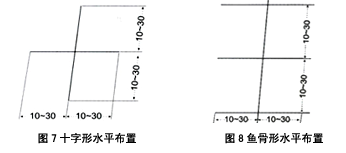 如圖1-4,分一字形、口字形、十字形及魚骨形。特別要指出的每根水平接地體之間的距離不應(yīng)小于5米,否則有屏蔽作用,影響降阻效果。此法適用于地形狹窄,但能深挖或有條件使用機(jī)械鉆孔的情況。