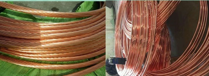 銅包鋼絞線和銅包鋼圓線是兩種產(chǎn)品,其產(chǎn)品詳細介紹在本網(wǎng)站產(chǎn)品列表中查找。銅包鋼絞線和銅包鋼圓線有相同之處,也有差異之處。我發(fā)一張兩個產(chǎn)品的對比照片,就會一目了然。